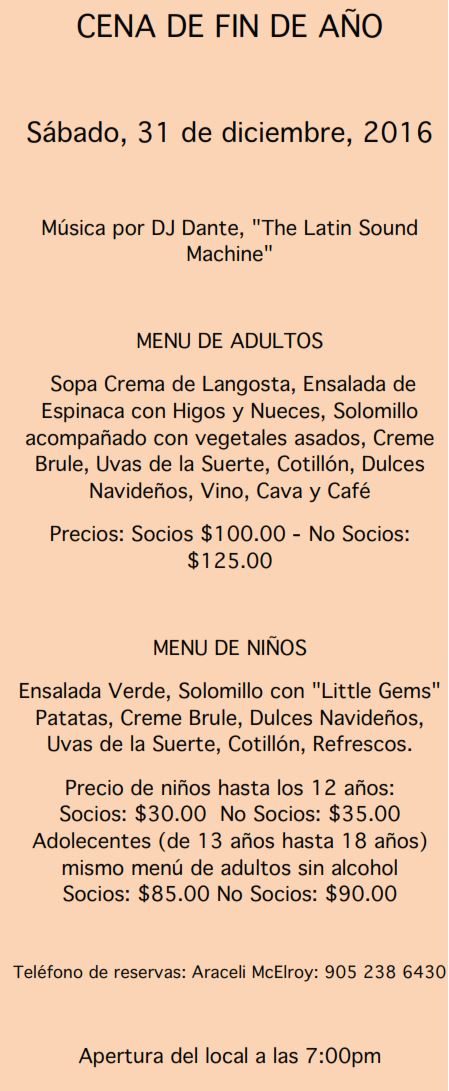 Para todas aquellas personas interesadas, después del torneo habrá una cena en la sede del Club Hispano.